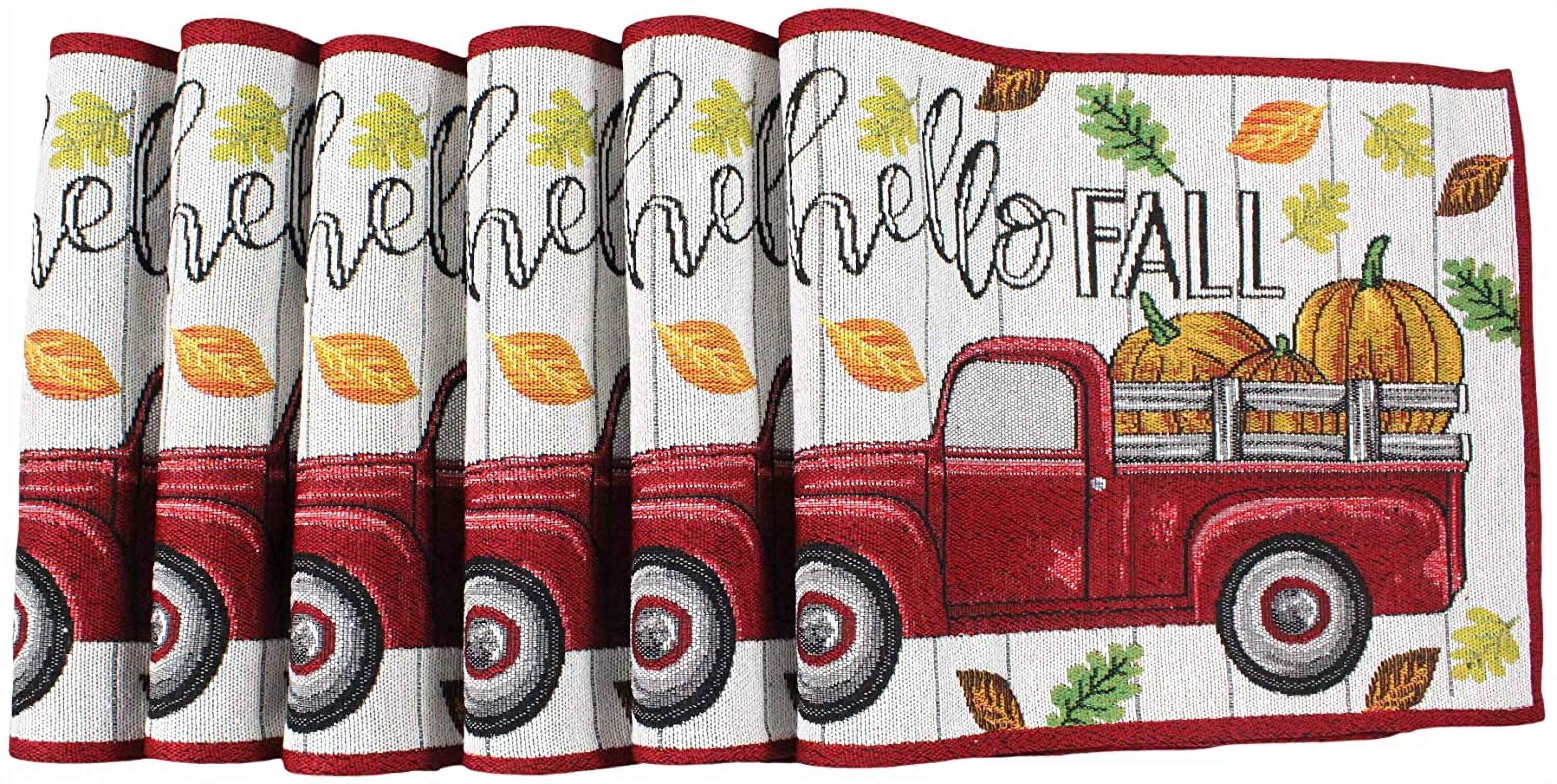 Fall Farmhouse Red Truck And Pumpkins Placemats Hello Fall Set Of Six 6 Colorful Tapestry Weave Fabric For Holiday S Thanksgiving Autumn And Fall Placemats Walmart Com